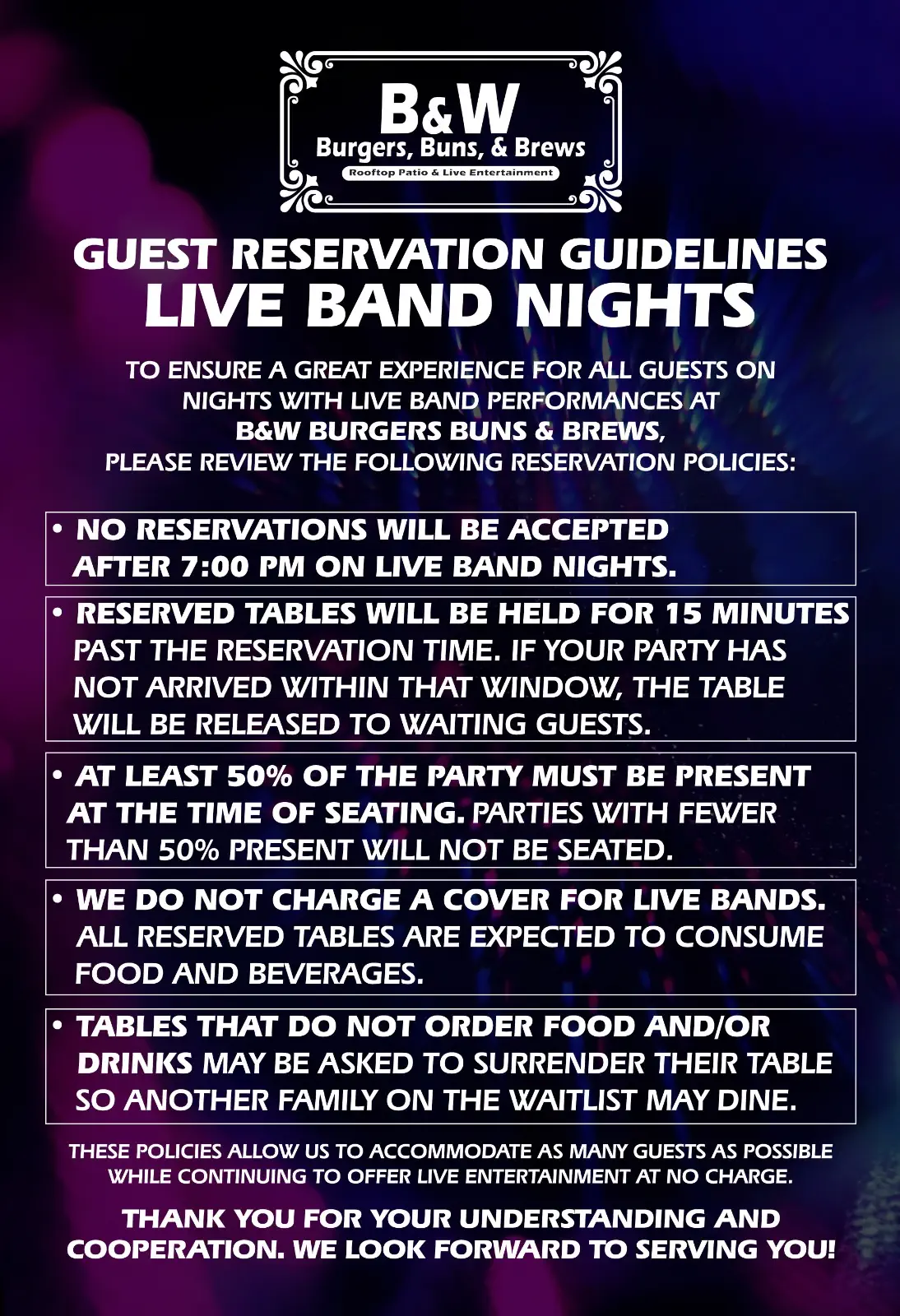 B&W Burgers first opened its doors in November of 2022. We are a locally owned and operated burger restaurant located in the heart of Norcross. We’re on a mission to challenge the way people think about burger places.